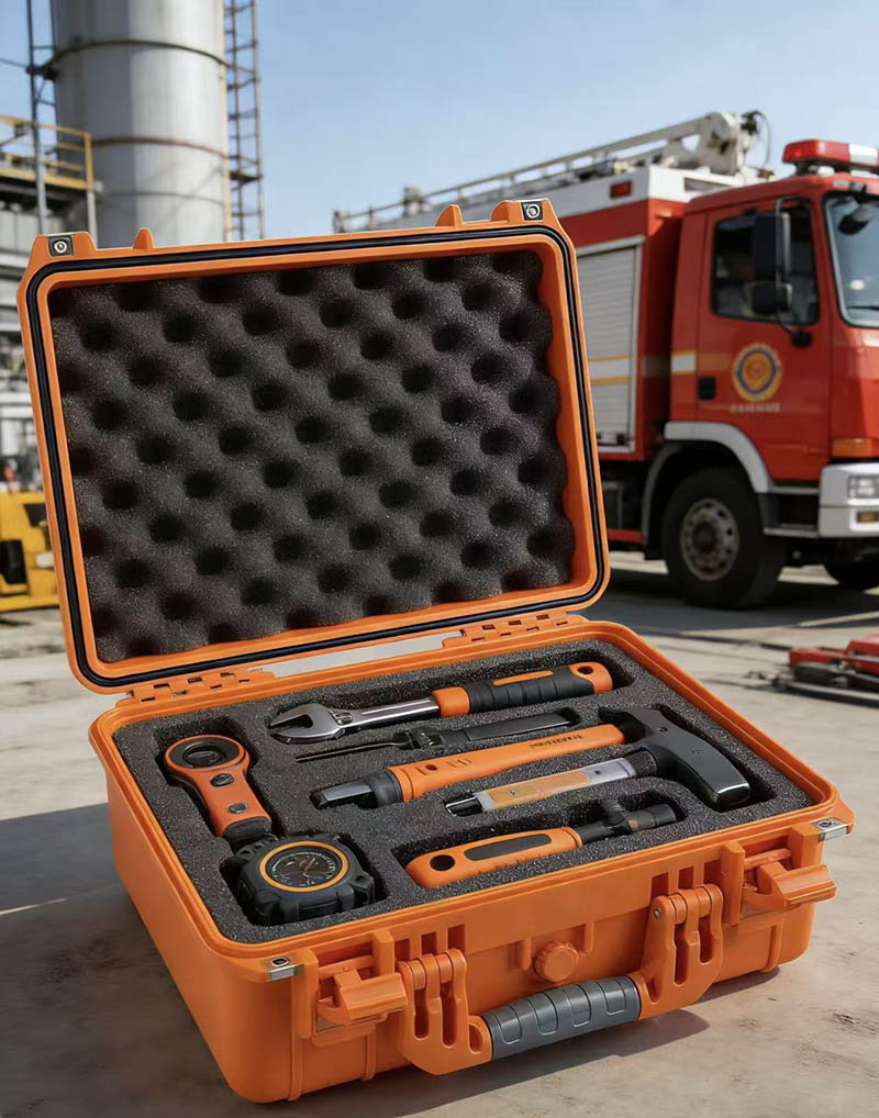 Protección profesional para rescate contra incendios Las cajas protectoras para rescate contra incendios de WEISHUO están diseñadas específicamente para brigadas de bomberos, unidades de rescate de emergencia y organizaciones de rescate profesionales. El cuerpo de la caja está hecho de plástico PP de ingeniería de alta resistencia y resistente a los impactos, combinado con un sistema de sellado a prueba de agua y polvo IP67, lo que garantiza que el equipo contra incendios permanezca intacto y fácilmente disponible en entornos de rescate hostiles. Ya sean herramientas para infracciones, aparatos respiratorios, cuerdas de rescate o equipos de detección, todos pueden recibir protección de nivel profesional en nuestros estuches protectores. Los estuches se fabrican en nuestra propia fábrica según un estricto sistema de control de calidad, lo que garantiza que cada producto cumpla con los requisitos profesionales de las operaciones de rescate contra incendios.