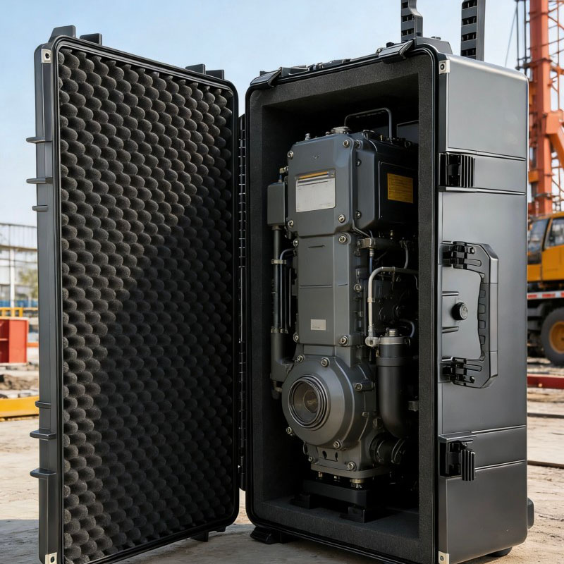 Diseño estructural reforzado Dirigidas a las necesidades específicas de los equipos pesados, las cajas protectoras para equipos pesados de WEISHUO cuentan con áreas clave reforzadas y engrosadas: Estructura reforzada de doble capa en las cuatro esquinas. Las nervaduras de refuerzo en la parte inferior mejoran la capacidad de carga Las paredes laterales engrosadas aumentan la rigidez general El sistema de bloqueo especialmente reforzado garantiza un sellado fiable bajo cargas pesadas.
