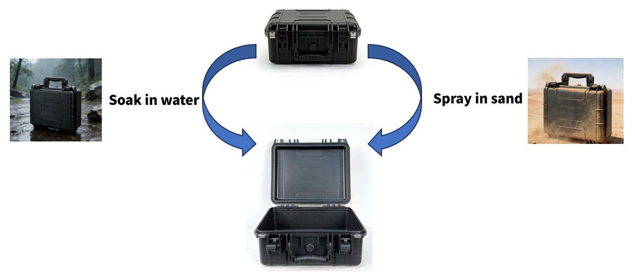 P4: ¿Cómo puedo verificar que la maleta que recibí realmente cumple con el estándar IP67? A4: Ofrecemos los siguientes métodos de verificación: Consulta el informe de pruebas de terceros incluido con la maleta. Realice una prueba sencilla: llénelo con toallas de papel y sumérjalo en agua durante 30 minutos para comprobarlo. Utilice nuestro servicio de pruebas: puede devolverlo para pruebas profesionales Especifique que necesita un informe de inspección de un tercero independiente al realizar la compra.
